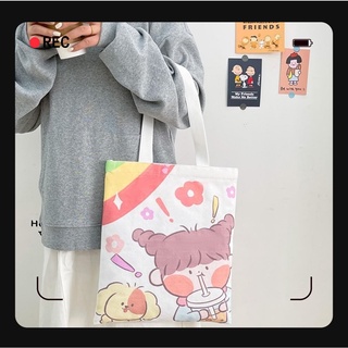 Túi vải Cỡ Lớn In Họa Tiết Hoạt Hình Phong Cách Hàn Quốc Thời Trang Cho Nữ
