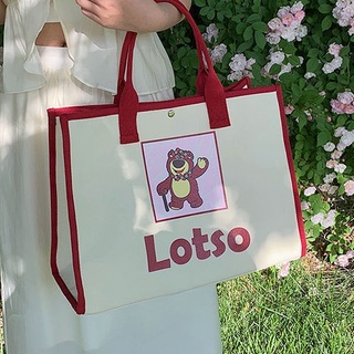 Túi Xách Vải Canvas Họa Tiết Dâu Tây/Gấu Cỡ Lớn 2022 Thời Trang Cho Nữ