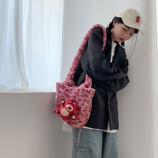 Túi Đeo Vai Chéo Vải Len Lông Cừu Hình Gấu/Dâu Tây Phối Dây Xích Thời Trang Thu Đông 2022