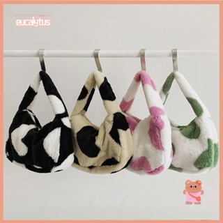 Túi Xách Đeo Vai Phủ Lông Mềm Mại Họa Tiết Trái Tim