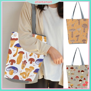 Túi Tote Đeo Vai Bản Rộng In Họa Tiết Cây Nấm Hoạt Hình Có Thể Tái Sử Dụng