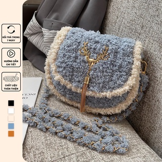 Túi len tự đan, túi đeo chéo len xù phong cách đơn giản cá tính - Bộ phụ kiện đầy đủ LX201
