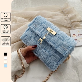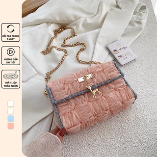 Túi handmade tự đan caro, túi đeo chéo len vải thời trang Hàn Quốc - Bộ phụ kiện đầy đủ LX503