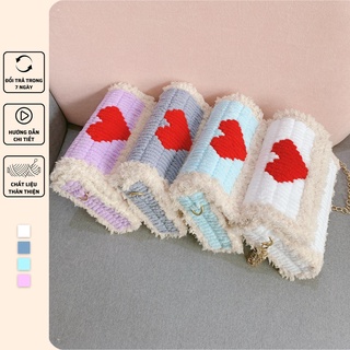 Túi tự đan handmade phối trái tim đỏ, túi đeo chéo dễ thương cá tính - Bộ phụ kiện đầy đủ LX602
