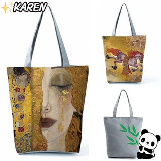 Karen Túi Xách Tote Vải Lanh Cỡ Lớn Họa Tiết Tranh Sơn Dầu Thời Trang
