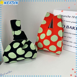 NEXTVN Túi Xách Đan Len Sức Chứa Lớn Họa Tiết Chấm Bi Tròn Thắt Nút Có Thể Tái Sử Dụng Cho Nữ