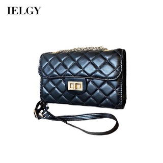 IELGY Túi Đeo Vai Màu Đen Họa Tiết Hình Thoi Phong Cách Hàn Quốc Thời Trang Cho Nữ