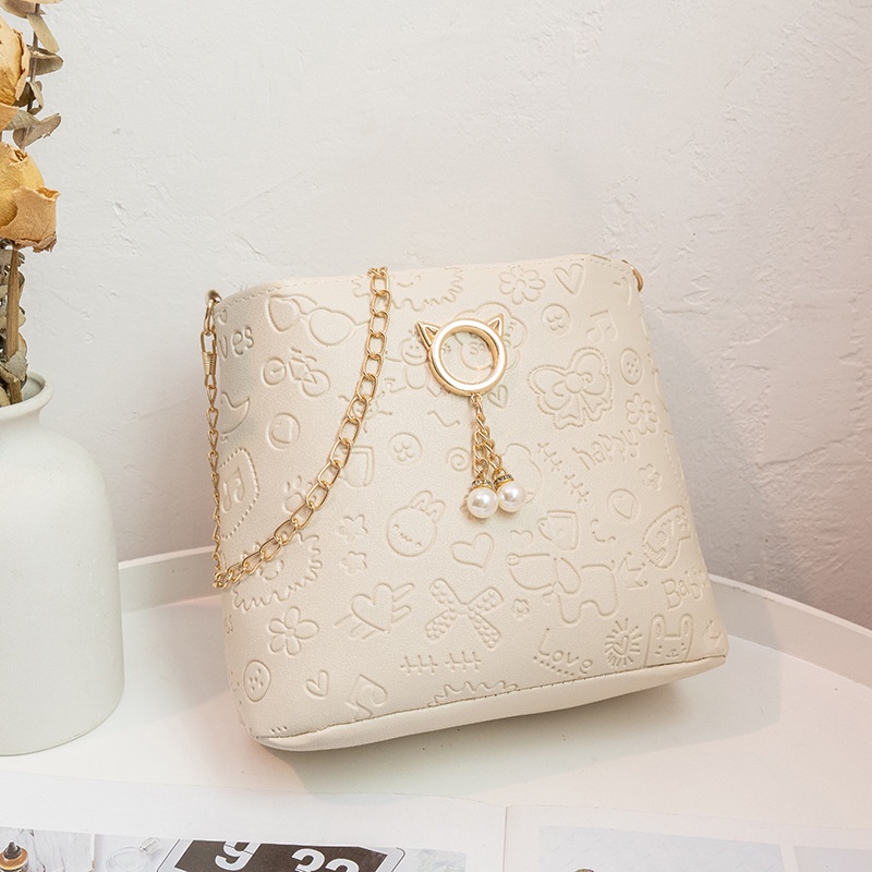 Giới thiệu Túi Xách Bucket Cỡ Lớn Đính Ngọc Trai Phối Dây Xích Thời Trang