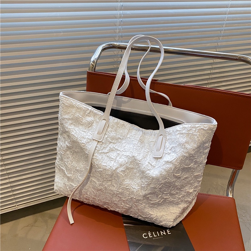 Tính năng: Kích thước khía: lớn Kết cấu lót: polyester Họa tiết: trơn Màu sắc: Trắng, kaki, đen Phương pháp xử lý: Bề mặt mềm Bộ phận xách tay: quai cầm mềm Phong cách xu hướng túi: Túi Tote Loại túi bên ngoài: không có Độ cứng: mềm Chất liệu: Vải Canvas Hình dạng túi: hình vuông nằm ngang Kiểu mở: dây kéo Các yếu tố phổ biến: nếp gấp Phong cách: xu hướng đường phố Số gốc dây: gốc kép Có hoặc không có lớp xen kẽ: không có