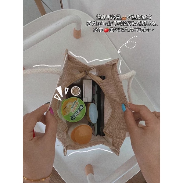 Giới thiệu Túi xách cói mini hoạ tiết đáng yêu có khoá kéo Style Hàn Quốc - Túi tote vải canvas thích hợp đi chơi, cafe, du lịch