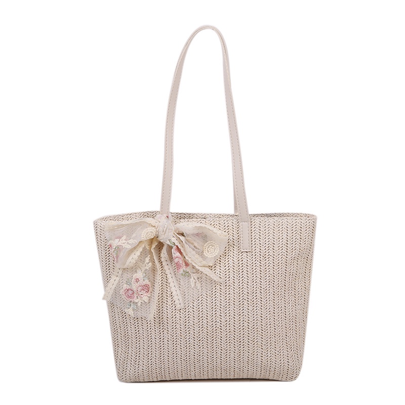 Đặc điểm: Kích thước túi: lớn Kết cấu lót: polyester Mô hình: trơn Màu: Kaki, be Bộ phận xách tay: quai cầm mềm Phong cách xu hướng túi: Túi Tote Độ cứng: mềm Chất liệu: Rơm Hình dạng túi: vuông dọc Phương pháp mở: Khóa từ Các yếu tố phổ biến: ren, dệt Phong cách: tươi mát và ngọt ngào Số gốc dây: gốc kép Có hoặc không có lớp xen kẽ: không có