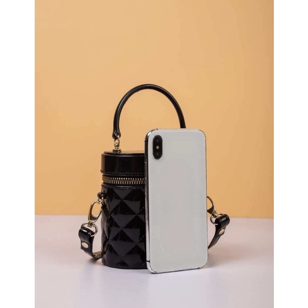 Túi xách đen đeo chéo quả trám dạng hộp