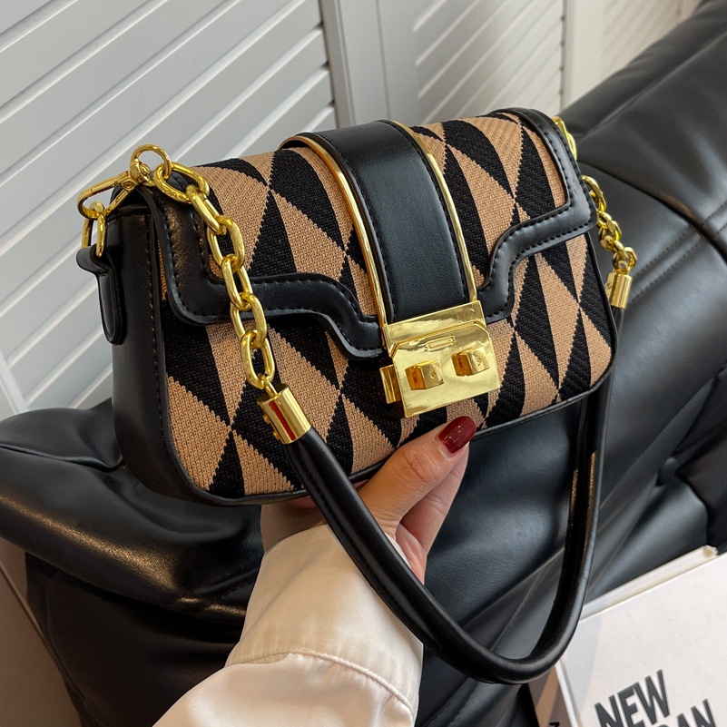 Túi xách đeo chéo JASMIN NOIR vải bạt nắp gập dây xích thời trang sành điệu dành cho nữGiá DYNA