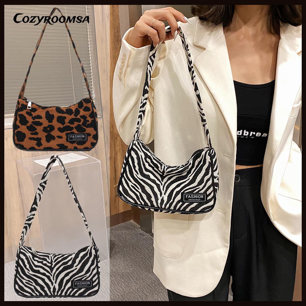 Túi xách đeo vai dưới cánh tay chất liệu canvas họa tiết da báo/ngựa vằn phong cách đường phố du lịch đơn giản cho nữ Đặc trưng: Họa tiết động vật, retro, dây khóa kéo. Chất liệu vải, xách tay, sành điệu.
