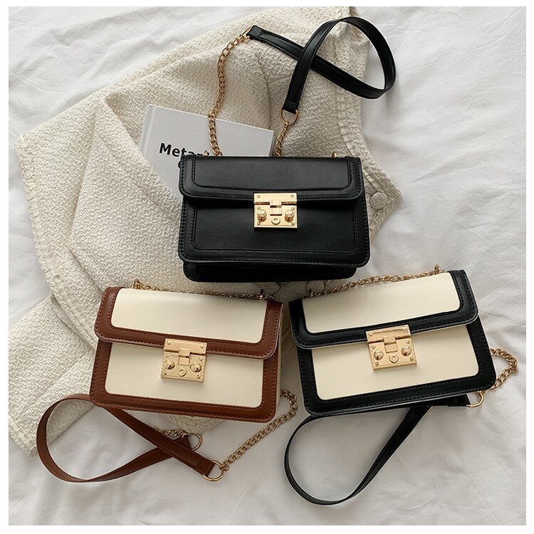 Giới thiệu Túi xách đeo vai JASMIN NOIR từ da PU hình vuông phối dây xích thời trang dành cho nữ