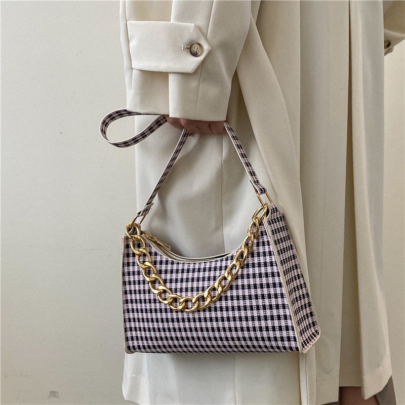 Giới thiệu Túi xách đeo vai JASMIN NOIR họa tiết sọc caro thời trang sành điệu cho nữ