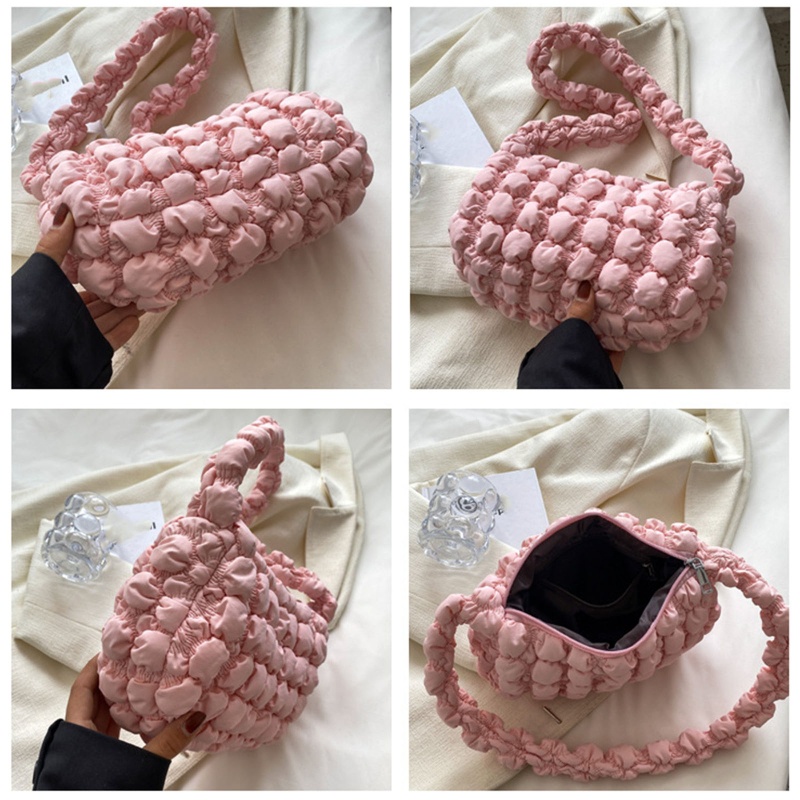 Giới thiệu Túi Xách Đeo Vai / Kẹp Nách Màu Trơn Hình Đám Mây Xếp Ly Thời Trang Dự Tiệc
