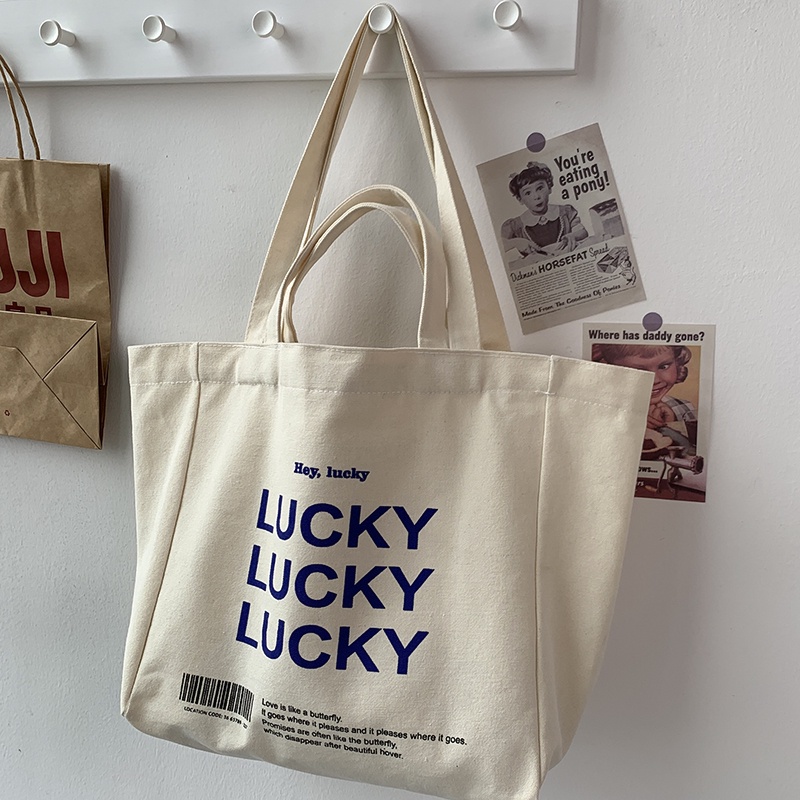 Giới thiệu Túi xách đeo vai vải bạt cỡ lớn in chữ kiểu dáng thời trang đơn giản cho nữ IELGY