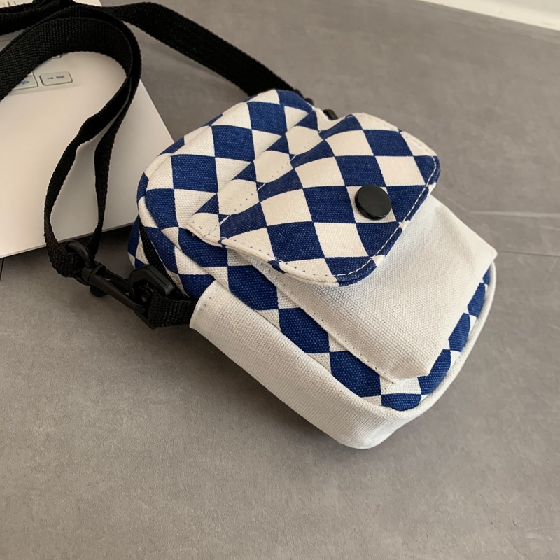 Giới thiệu Túi Xách Đeo Vai Vải Bạt Kiểu Vuông Nhỏ Họa Tiết Bàn Cờ Kẻ Ô Thời Trang Nhật Bản