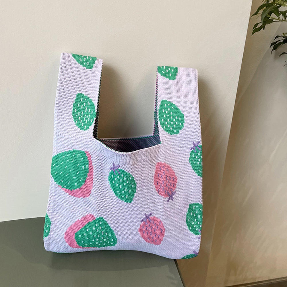 Tính năng ' 1. Những món đồ nhỏ thời trang xung quanh bạn rất thích hợp để phối hàng ngày và đi dạo phố . 2. Kết cấu dệt kim. kết cấu dày và ổn định . 3. Thiết kế họa tiết dâu tây dễ thương , cộng với nền đồng màu , mang tính thời trang . 4. Phiên bản xách tay rất linh hoạt và có thể được điều khiển rất tốt , và nó trông đẹp cho dù nó có khớp với hình dạng lõm như thế nào . 5. Cơ thể nhỏ và sức chứa lớn nên rất bắt mắt cho dù đó là mua sắm , hẹn hò hay làm việc bằng tay .