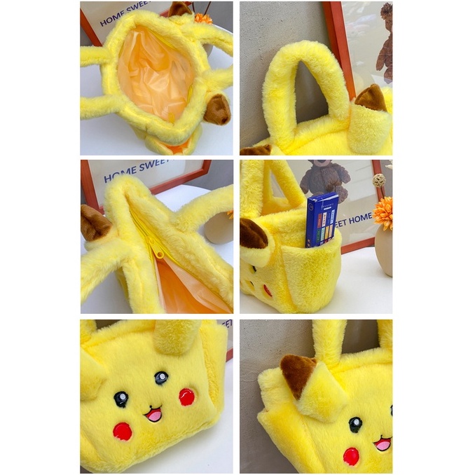 Sản phẩm: túi xách Kiểu dáng: túi xô Độ cứng: mềm Chất liệu: vải cotton; Kích thước: chiều rộng trên 32CM * chiều rộng dưới 20CM * chiều cao 19CM * độ dày 10CM Trọng lượng: 0,15KG Phân loại: gấu dâu, pikachu Cách đóng mở: miệng hở Phong cách: tươi mát và ngọt ngào Có lớp phân chia ngăn không: có