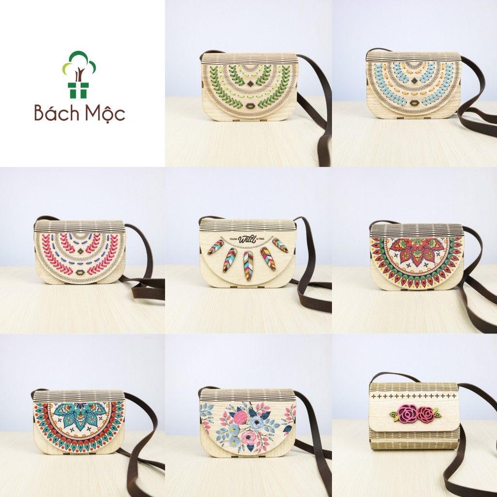 🌲 THÔNG TIN SẢN PHẨM - Thương hiệu: Bách Mộc - Xuất xứ: Việt Nam - Chất liệu: + Túi Xách: Gỗ công nghiệp + Dây đeo: Dây da + Họa tiết: Khắc laser, in màu 3D - Kích thước: + 18cm x 13cm x 6cm + 14.5cm x 18cm x 8.5cm (Hoa Hồng Nổi, Thổ Cẩm Đen Trắng) - Phân loại: Đan Dây Xanh Lá, Đan Dây Xanh Dương, Đan Dây Hồng, Wild Lông Chim, Boho Cam, Boho Xanh, Hoa Chùm, Hoa Hồng Nổi, Thổ Cẩm Đen Trắng