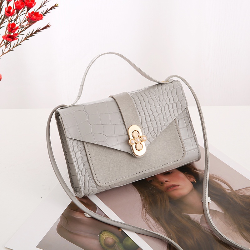 Giới thiệu Túi Xách Họa Tiết Da Cá Sấu Đính Ngọc Trai Phong Cách Retro Cho Nữ