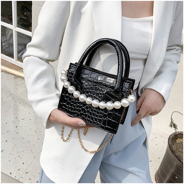 Giới thiệu Túi Xách JASMIN NOIR Da Cá Sấu Dáng Vuông Nhỏ Đính Ngọc Trai Giả Sang Trọng Cho Nữ