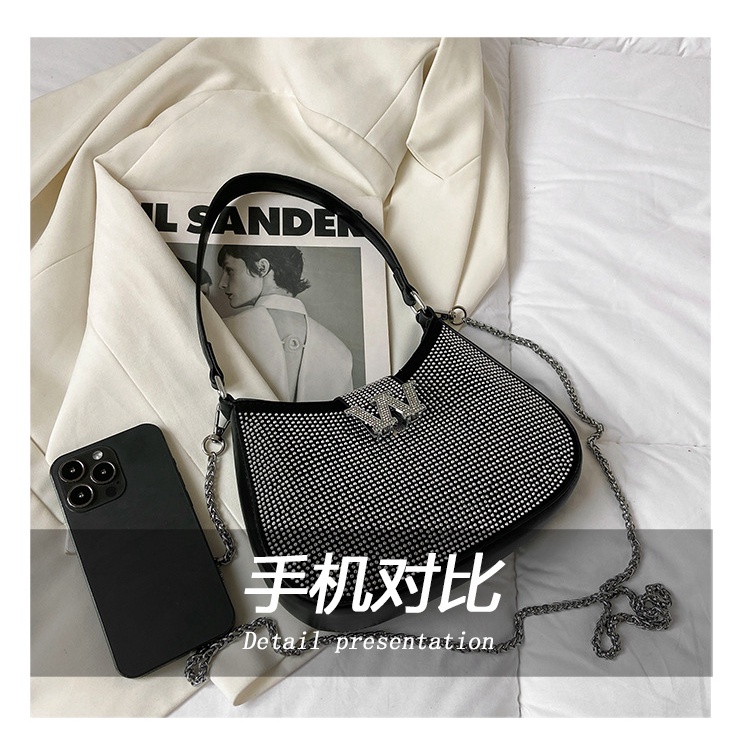 Giới thiệu Túi Xách JASMIN NOIR Đeo Chéo Đính Đá Hình Bán Nguyệt Thời Trang Cho Nữ