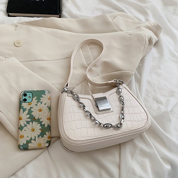Giới thiệu Túi xách Jasmin Noir đeo vai vân da cá sấu với dây xích cá tính cho nữ