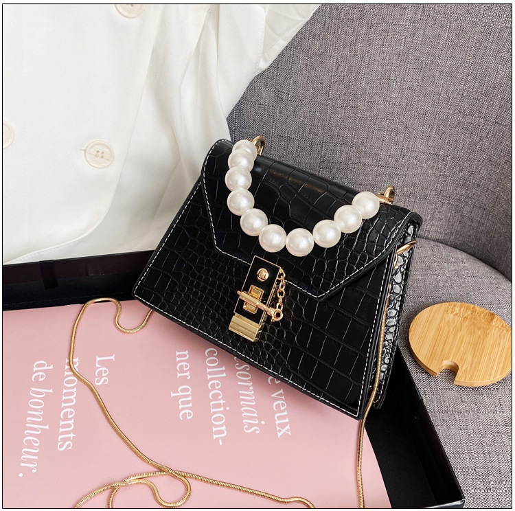 Giới thiệu Túi Xách JASMIN NOIR Hoạ Tiết Da Cá Sấu Phối Dây Đeo Mắt Xích Và Ngọc Trai Dành Cho Nữ