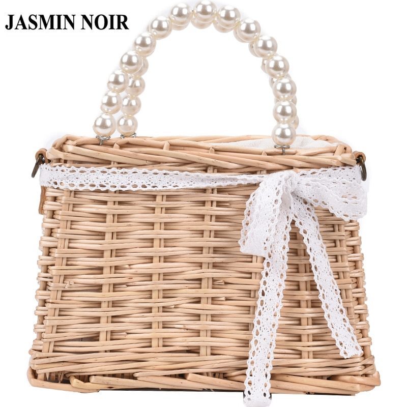 Giới thiệu Túi xách JASMIN NOIR kiểu rơm dệt với tay cầm khảm hạt ngọc trai sang trọng cho nữ