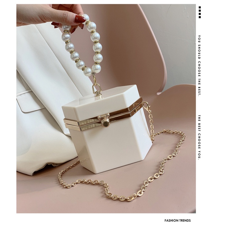 Chất liệu: Acrylic Kích thước: Chiều dài: 14 cm, Cao: 12 cm, Rộng: 11 cm Sức chứa: Có thể đựng điện thoại, ví, son môi và các vật dụng hàng ngày khác Có thể sai số 1-3cm do đo lường thủ công ~