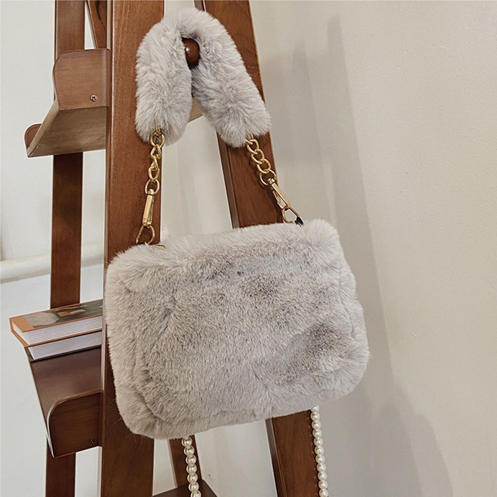 Giới thiệu Túi xách lông nhung mềm đính ngọc trai giả phối dây xích sang trọng cho nữ