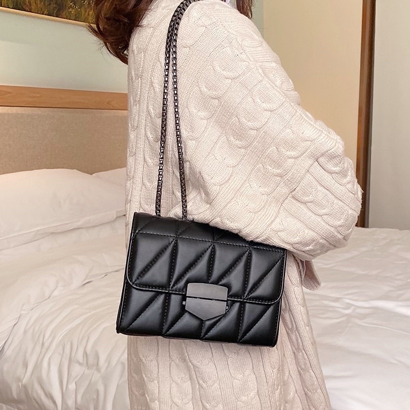Giới thiệu Túi Xách Nữ,đeo chéo trần trám khóa sập đen thời trang dây xích đen siêu hot