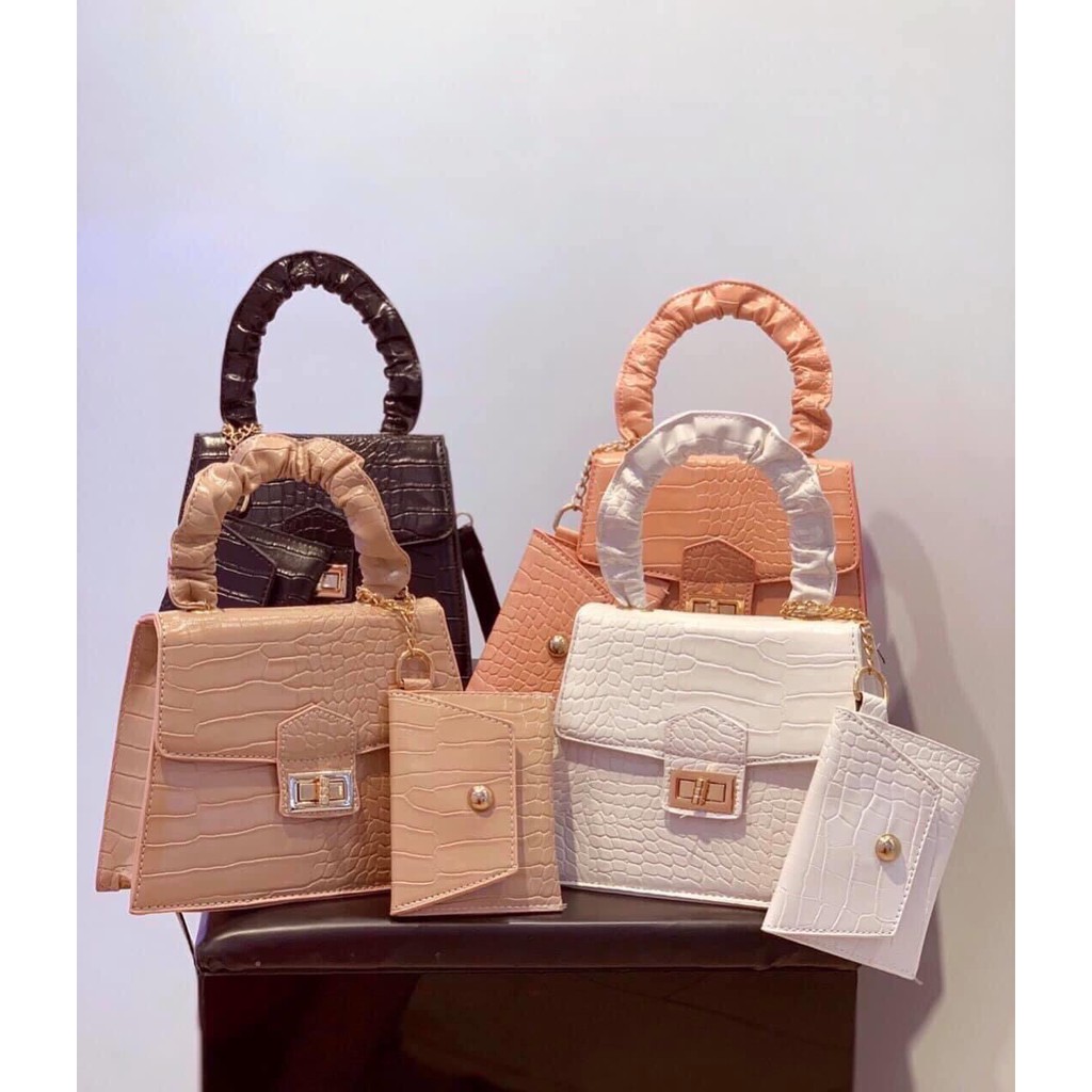 Túi xách nư thời trang đeo chéo quai nhúm kèm ví mini da cá sấu mẫu mới nhất túi ngọc trinh túi quỳnh búp bê giỏ xách đẹp