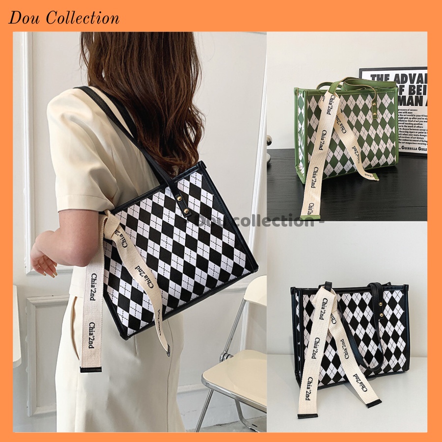 Giới thiệu Túi Xách Nữ (Túi Tote) Kẻ Hình Thoi Đeo Vai Form Lớn Đi Học & Công Sở Phong Cách Thời Trang Hàn Quốc - Mã XT067