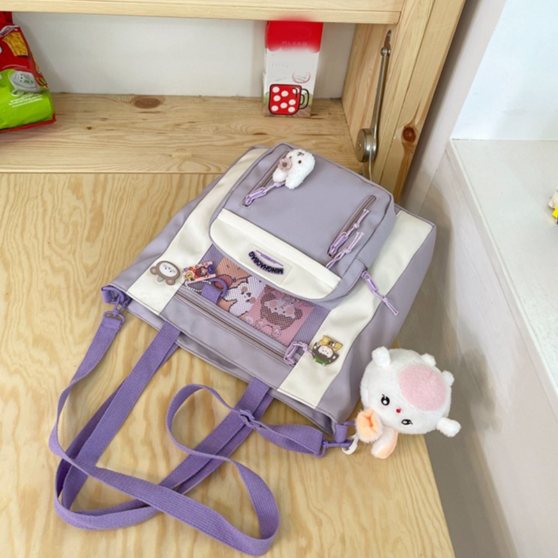 Túi đi học dễ thương cho cô gái tuổi teen Phụ nữ Phụ nữ Túi đeo chéo dung tích lớn Túi sách học sinh Túi Nylon Mô tả ' Thương hiệu mới và chất lượng cao Tính năng ' Một chiếc cặp đi học dễ thương , những chiếc ghim và đồ chơi sang trọng trong hình đều được bao gồm trong gói . "Các mẫu ghim được giao ngẫu nhiên) Thiết kế đơn giản và tiện lợi. nhiều túi , để giữ cho các mặt hàng của bạn ngăn nắp và dễ tìm hơn . Nó là một chiếc cặp học sinh mạnh mẽ và có thể là túi đeo vai hoặc túi đeo chéo , về cơ bản có thể đáp ứng mọi nhu cầu của bạn . Các phụ kiện có thể được cài đặt trên các túi khác nhau . Bạn cũng có thể treo những chiếc ghim yêu thích của mình lên đó vì nó rất dễ thương Ba lô được làm bằng chất liệu nylon. sử dụng lâu bền. thân thiện với môi trường và sức khỏe . Thích hợp cho thanh thiếu niên , phụ nữ làm túi sách để sử dụng hàng ngày và đi du lịch , v.v . Hoàn hảo để đi bộ đường dài , cắm trại , kỳ nghỉ và các hoạt động trong nhà hoặc ngoài trời khác nhau .