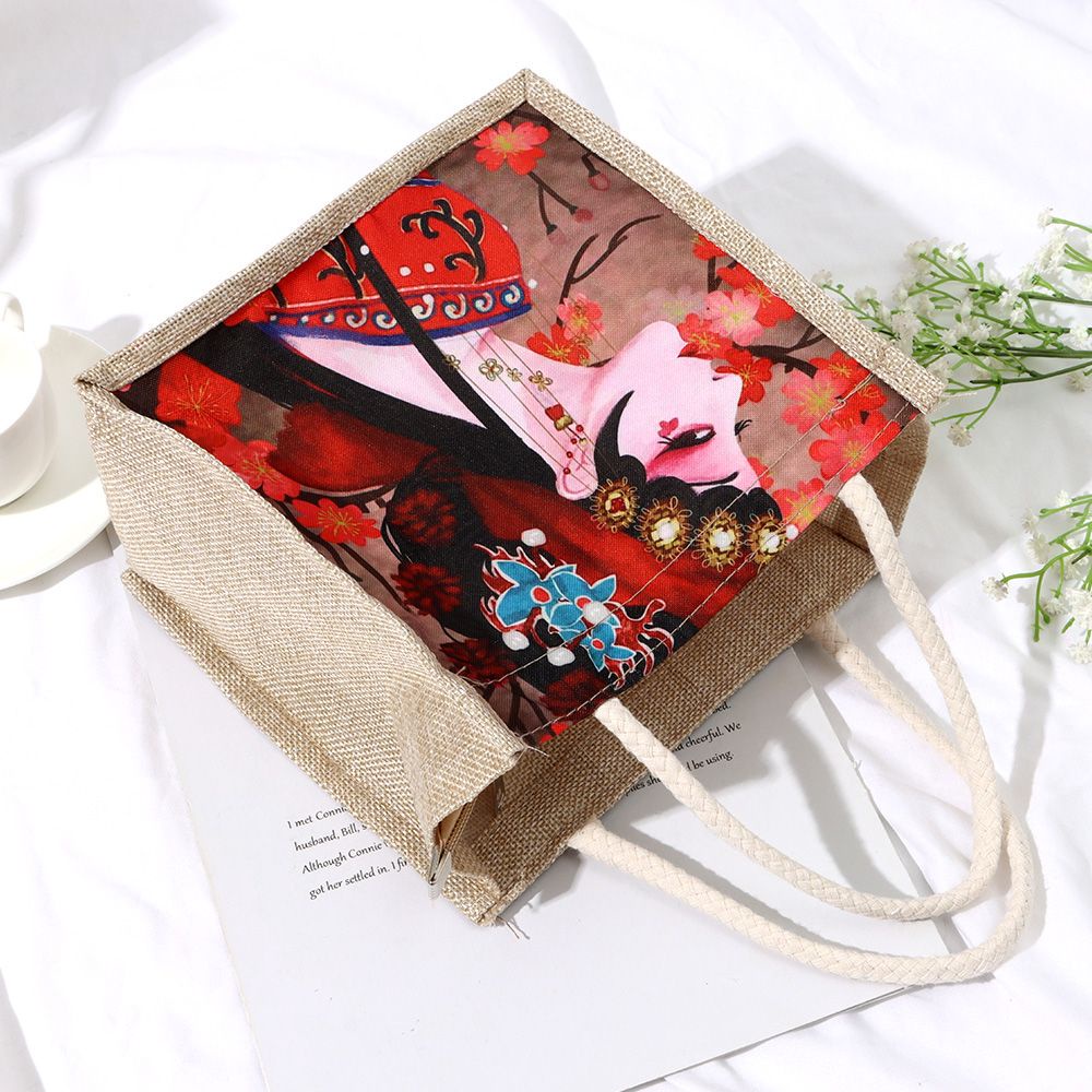 Giới thiệu Túi xách tay bằng vải canvas có khóa kéo in họa tiết phong cách dân tộc độc đáo thời trang dành cho nữ