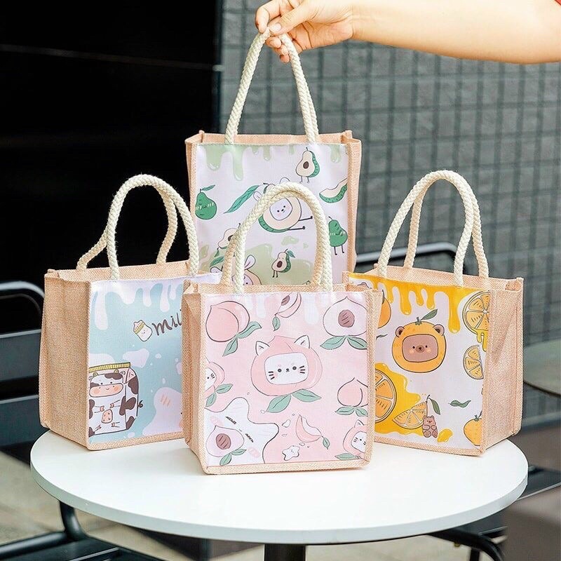 Giới thiệu Túi xách tay, Túi mini kiểu vuông bằng vải cói phong cách vintage in họa tiết xinh xắn dành cho nữ đi biển, du lịch