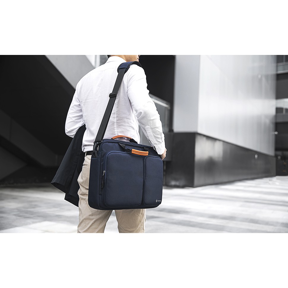 TÚI XÁCH TOMTOC (USA) TRAVEL BRIEFCASE FOR ULTRABOOK 15" - Thương hiệu chính Hãng TOMTOC (USA) - Ngăn để laptop bảo vệ cho laptop lên tới 15,6 inch. Ngăn để máy tính bảng bổ sung cho tối đa 11 máy tính bảng, bao gồm cả iPad Pro 11 inch mới và 10,5 inch với case bàn phím thông minh. - Lớp đệm dày ở phía dưới và hai bên bảo vệ các thiết bị khỏi rơi và va đập như túi khí xe hơi. Bên trong có lót mềm bền ngăn ngừa trầy xước. - Hai túi trước cho các phụ kiện máy tính xách tay như bộ đổi nguồn, bộ sạc, chuột di động, dây cáp, v.v. Kích thước túi: 9,6 x 8,7 in (L), 9,6 x 5,7 (R); Ngăn chính lớn để sách, tài liệu và các phụ kiện khác. - Với chức năng 3 in 1: Chúng ta có thể xách túi bằng tay cầm cũng có thể đeo chéo qua vai một cách dễ dàng và là một hành lý song hành trên chiếc vali mỗi khi công tác bằng đai gài vào cần kéo vali - Được làm bằng vải bên ngoài chống nước bền cũng như bảo vệ bên trong đệm mềm. Khoá kéo được sử dụng từ thương hiệu khoá YKK chất lượng cao của Nhật Bản - Lý tưởng để sử dụng hàng ngày tại nơi làm việc, trường học, cuối tuần, du lịch thường xuyên, kỳ nghỉ ngoài trời, các hoạt động ngoài trời, vv - Kích thước mô hình phù hợp tối đa: 17,1 x 13 x 3,9 inch Macbook Retina 15" Macbook Pro 15" Ultrabook 15 - Tương thích phù hợp với hầu hết các máy tính xách tay 15-15.6, MacBook Pro 15 inch, Dell XPS 15, Surface Book 2 15 inch, Ultrabook, Chromebook, Notebook - Trọng lượng: 12.4g - Bảo hành: 1 Năm (đường chỉ, dây khóa) - Thương hiệu chính Hãng TOMTOC (USA)