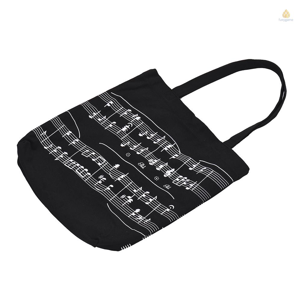 Túi Xách Tote Vải Cotton Đính Nút Từ Tính In Hình Nốt Nhạc Dễ Thương