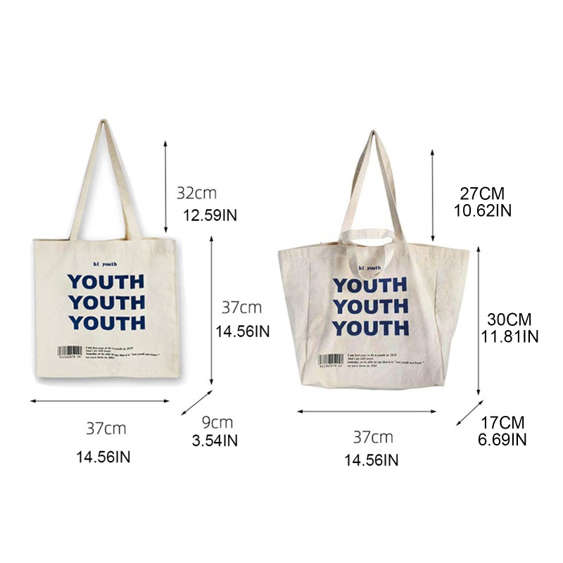 Túi mua sắm bằng vải dành cho nữ Thanh niên Chữ in Túi đeo vai nữ Túi xách Tote Túi đựng hàng tạp hóa có thể tái sử dụng Thương hiệu mới và chất lượng cao