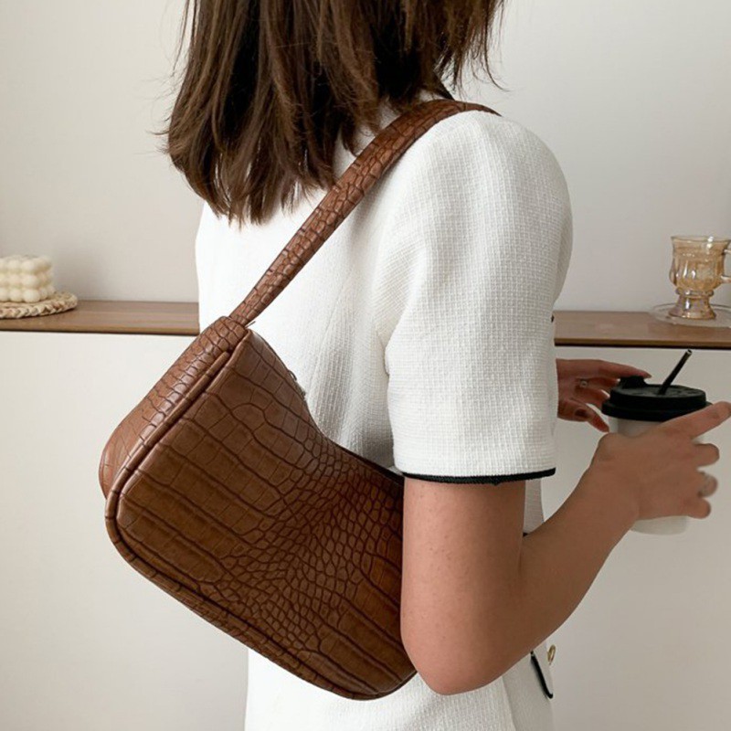 Hình dạng: Bánh mì Chất liệu chính: PU Loại túi xách: Túi đeo vai Chất liệu lót: Polyester Số tay cầm // Quai: 1 Dành cho: Phụ nữ Kiểu họa tiết: Cá sấu Cách khóa: Dây kéo
