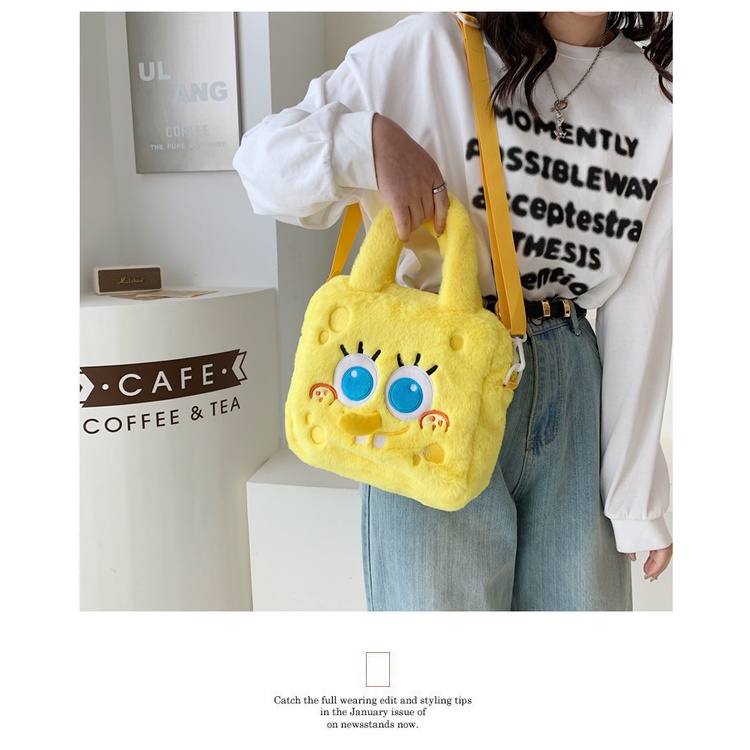 Dành cho: chung Chất liệu: nhồi bông Kích thước túi: nhỏ Công suất: 10L Cấu trúc bên trong gói: khác Cách mở: dây kéo Số gốc dây: đơn Kết cấu lót: polyester Họa tiết: Hoạt hình Nhân vật hoạt hình: SpongeBob SquarePants Các yếu tố phổ biến: màu kem Loại phụ kiện: túi có dây đeo vai Màu sắc: vàng, hồng Phong cách: trẻ con và thật dễ thương