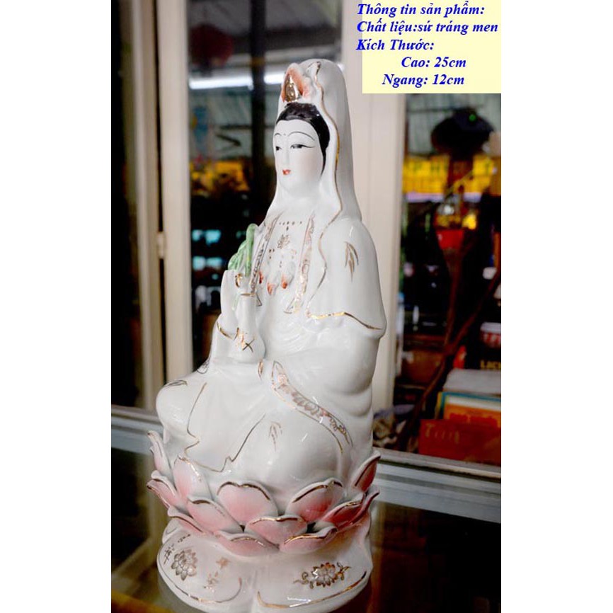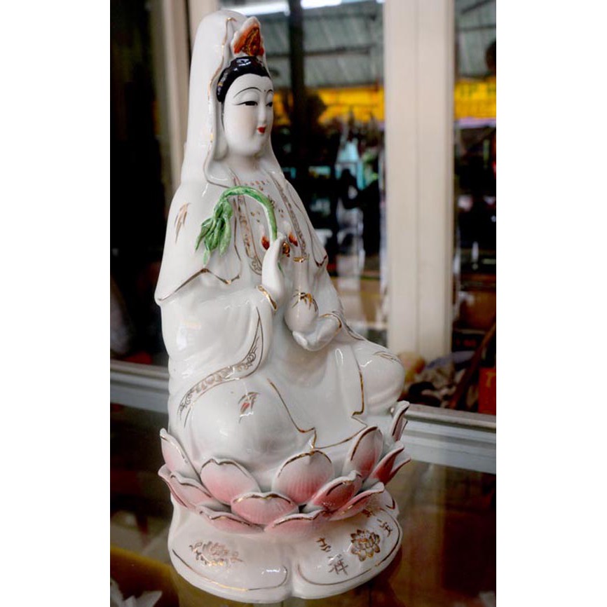 Tượng ngài Quan Thế Âm Bồ Tát ngồi bằng gốm tráng men Chất Liệu:gốm sứ Kích thước: Cao 22cm ngang 12cm Cao 25cm ngang 14cm Cao 30cm ngang 18cm Màu sắc tượng được sơn vẽ tỉ mỉ,nước sơn chất lượng tốt,có thể lau chùi,vệ sinh với nước dễ dàng,không phai màu sơn. Những hình ảnh sản phẩm của shop đăng trên website đều là shop tự chụp sản phẩm thực tế,màu sắc có thể đậm nhạt hơn do ánh sáng khi chụp,màn hình máy tính,điện thoại vv.... Ngoài ra,shop còn rất nhiều các sản phẩm,văn hóa phẩm Phật giáo,đồ thờ cúng,quà lưu niệm........mời quý khách ghé thăm gian hàng tham khảo thêm,hoặc có thể đến liên hệ cửa hàng của shop ở TPHCM .Nếu quý khách cần thêm thông tin về sản phẩm hoặc chưa tìm thấy sản phẩm mình cần,vui lòng chat inbox với shop.hoặc sdt 0986552573. Việc thờ Phật cũng là để thể hiện sự ngưỡng mộ của mình đối với Đức Phật. Có lẽ không ai trong chúng ta có được lòng từ bi rộng lớn như Ngài. Bởi có ai trong chúng ta không có sự đố kỵ, ghen ghét, hẹp hòi, ích kỷ, tham lam và đầy sân hận? Dù ít dù nhiều cũng có phải không bạn? Tuy nhiên, đối với đức Phật, người đã tìm ra chân lý của sự vô ngã, của cái Không, thì trong mắt Ngài chỉ còn sự từ bi và tình thương vô lượng đối với chúng sinh. Phật không dùng thần thông, phép thuật nào để cứu nhân độ thế hay mê hoặc con người đi theo Ngài. Ngài chỉ dùng sự từ bi để cảm hóa chúng sinh, cảm hóa mọi đau khổ và vô minh của con người. Đó là điều mà chúng ta cần phải ngưỡng mộ. Và từ sự ngưỡng mộ đó, chúng ta càng phải cố gắng trau dồi bản thân với những điều tốt đẹp Đức Phật truyền dạy để trở thành một người luôn an lạc và tràn ngập yêu thương như vậy.