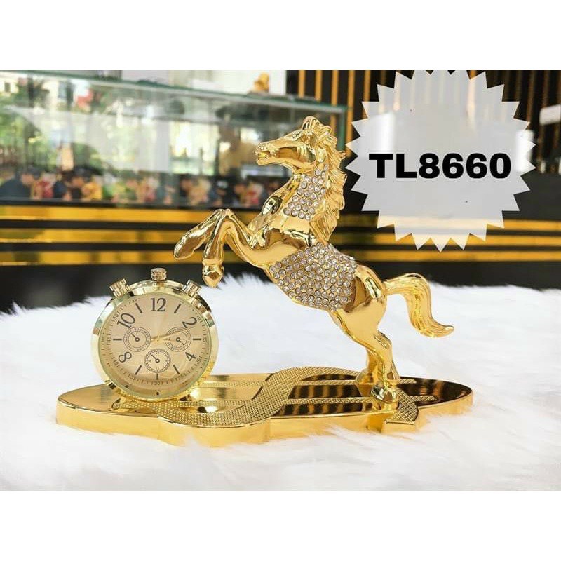 Ô Tô & Xe Máy & Xe Đạp > Phụ kiện bên trong ô tô > Nước hoa, Máy làm sạch không khí & Máy lọc > Tượng nước hoa ngựa mạ vàng kiêm đồng hồ trang trí trên taplo ô tô hay bàn làm việc