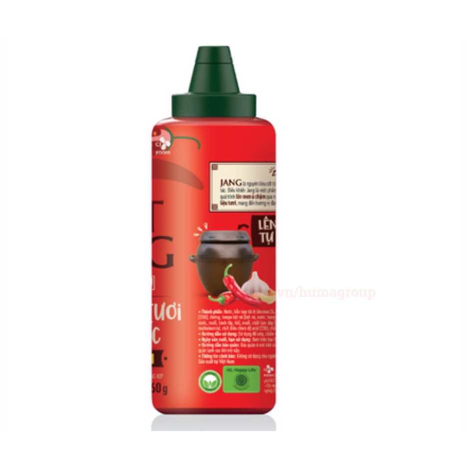 - Tương Ớt Tươi Hàn Quốc Cay Tự nhiên và Cay Ngọt 260g lên men tự nhiên từ Ớt và Tỏi Tươi mang đến cho bạn hương vị cay ấm chầm chận lan tỏa. - Jang là nguyên liệu cốt lõi lâu đời của ẩm thực Hàn Quốc. Điều khiến Jang trở nên đặc biệt nằm ở quá trình lên men ủ chậm qua nhiều ngày, được làm từ những nguyên liệu tươi giúp mang đến hương vị đậm đà, ngon ngọt tự nhiên, hài hòa và lan tỏa. - Chai tương ớt tươi 260g được làm từ những nguyên liệu lâu đời cổ truyền và tươi sạch nhất, trải qua quá trình chế biến hiện đại mang đậm tinh túy của người Hàn Quốc. - Sản phẩm tương ớt HOT JANG sẽ là gia vị cho món ăn của bạn thêm cay hơn, ngon hơn và đậm vị hơn. - Là một thứ không thể thiếu trong các bữa ăn, đặc biệt là các bữa tiệc đồ nướng.