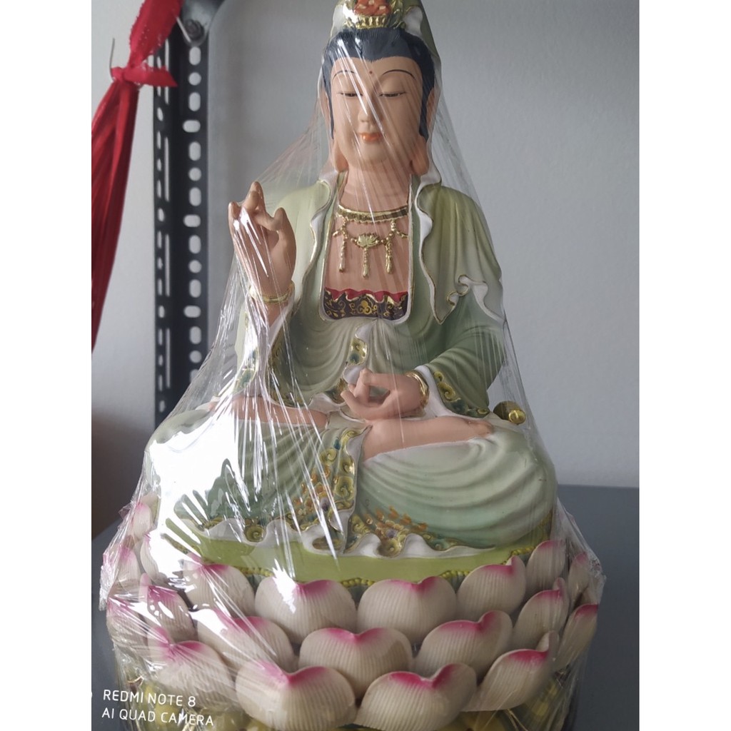 Tượng Quan thế âm Bồ tát chất liệu composite vẽ màu sắc nét Chiều cao 30cm Xuất sứ Trung Quốc Đường nét tinh xảo Trọng lượng 3kg Danh xưng Quán Thế Âm là xuất phát từ một truyền thuyết của Phật giáo, tin rằng những người tu hành đạt tới chính quả, thì ngũ giác của họ có thể dùng chung được. Nghĩa là họ có thể dùng tai để "nhìn" thấy hình ảnh, dùng mắt để "nghe" thấy âm thanh, lưỡi có thể ngửi được, v.v. Theo lòng tin này, thì danh xưng Quán Thế Âm Bồ Tát có nghĩa là: vị Bồ Tát luôn "nhìn thấy" tiếng ai oán, đau khổ trong bến mê của chúng sinh và sẵn sàng cứu giúp hay nói pháp khi cần. An Phước cung cấp số lượng lớn chuông mõ, kinh phật, cờ, phan, phướn, bảo cái..... Khách hàng vui lòng ib để được tư vấn miễn phí. chúc quý khách luôn an lạc, vạn sự như ý! Nam mô A DI ĐÀ PHẬT