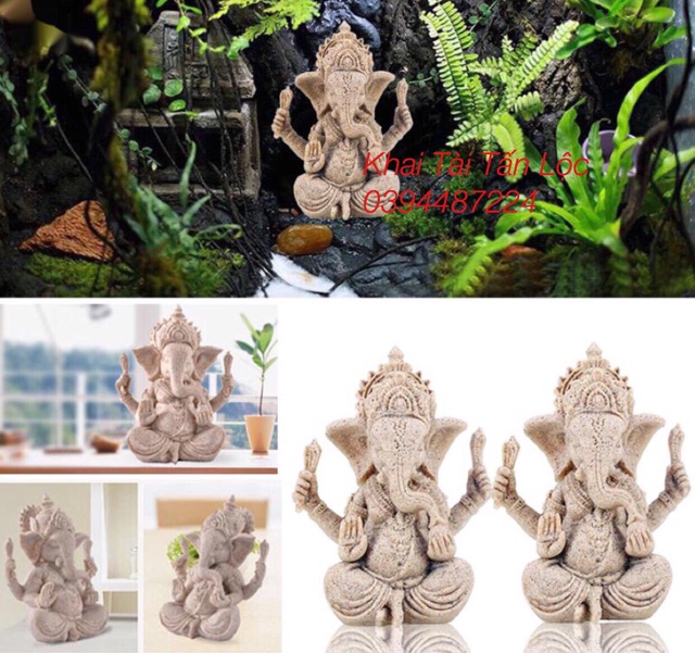 TƯỢNG Voi Thần Ganesha ( 120k/ tượng ) Ganesha là một vị thần đáng kính trong Ấn Độ Giáo, nhân dạng của thần kỳ dị, với đầu voi mình người. Thần Ganesha là tượng trưng của tài trí, hạnh phúc và thành công. Ngài là con của thần Shiva và nữ thần Parvati. Vị thần đầu voi Ganesha được thờ ở nhiều nước Đông Nam Á, trong đó có Thái Lan. Ngài là tượng trưng “cho sự hợp nhất giữa tiểu vũ trụ và đại vũ trụ”, được xem là vị Phúc thần đáp ứng những điều may mắn, cát tường cho mọi lời cầu nguyện. - Chất liệu : đá cát ( sa thạch ) chế tác theo lối đá mài - Kích thước : ngang 8,5 cm ; cao 9 cm Ngoài ra voi còn là 1 biểu tượng truyền đạt sức mạnh đáng kinh ngạc. Tuy rất mạnh mẽ nhưng bản chất của Voi luôn tìm kiếm sự hòa bình. Hình ảnh của Voi còn được gắn liền với hình ảnh của sự hi sinh, bảo vệ và che chở cho những người thân xung quanh. Ganesha là một nhân vật có khả năng giúp ích thành công, vượt qua mọi chướng ngại, chính vì vậy Thần Ganesha trở thành vị thần chủ yếu của các thương gia, doanh nhân. Ngay cả hiện nay, trong Phật giáo của Thái Lan, thần Ganesha được xem như vị thần của thành công, vượt qua được tất cả trở ngại.